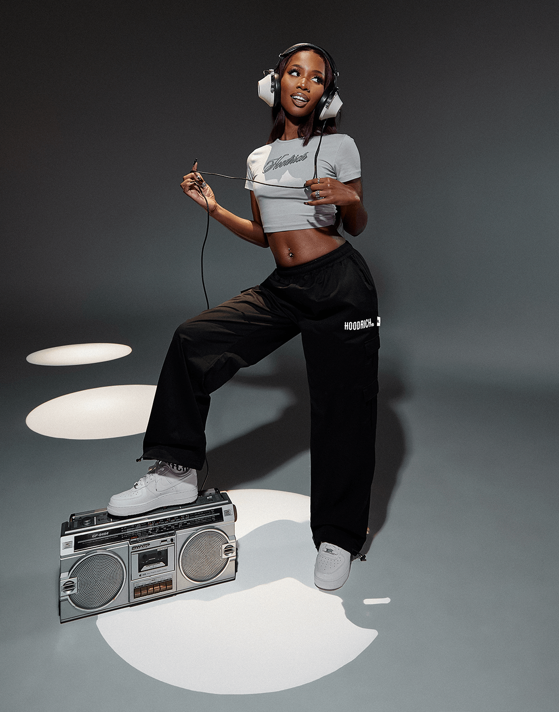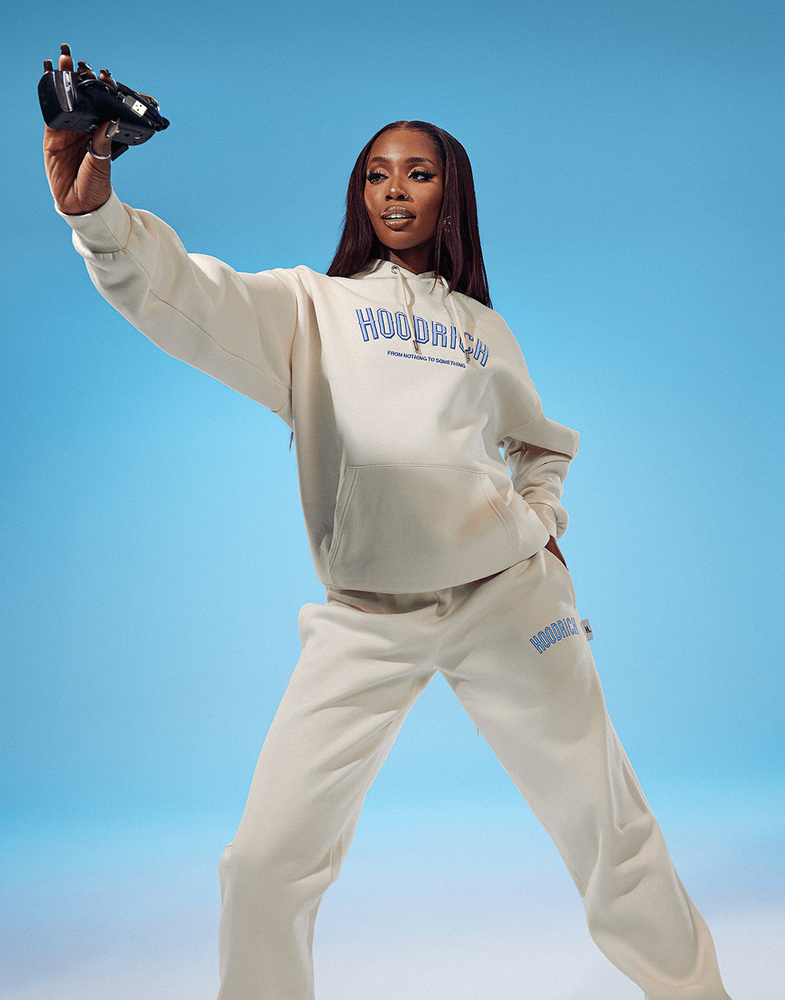 Presenter, DJ, and Broadcaster, Henrie shows us she is THAT girl as she debuts this seasons Hoodrich Womens X JD collection. Henrie is renowned for her work on Spotify’s Who We Be talks podcast, Kiss FM, and her contributions to signal radio. Her links with influential artists and influencers such as Burna Boy, Tyla, Wizkid, Tems, Giggs, and Lola Brooke make her the perfect face for Hoodrich Womens in connecting the brand to current culture and artistry as well as being an OG Hoodrich Womens advocate.